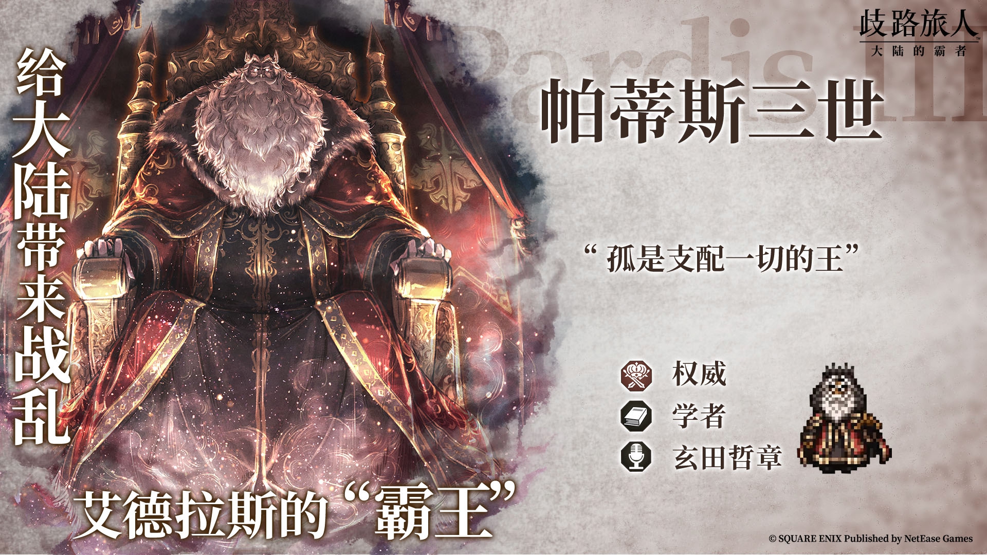 3、新增限时阶梯引导:“追忆的霸者”6★学者“帕蒂斯三世”,阶段5必定获得1个5★及以上旅人,50%的概率获得6★学者“帕蒂斯三世”,阶梯引导中可获得帕蒂斯三世的导石和导片(帕蒂斯三世/塞拉菲娜)。